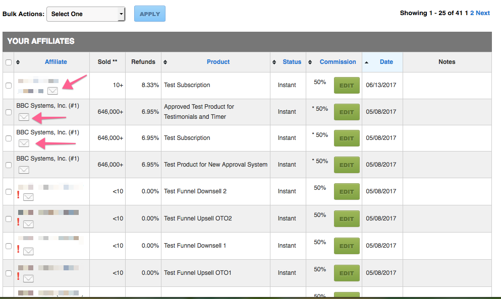 Sellers > Manage Affiliates > Active Affiliates