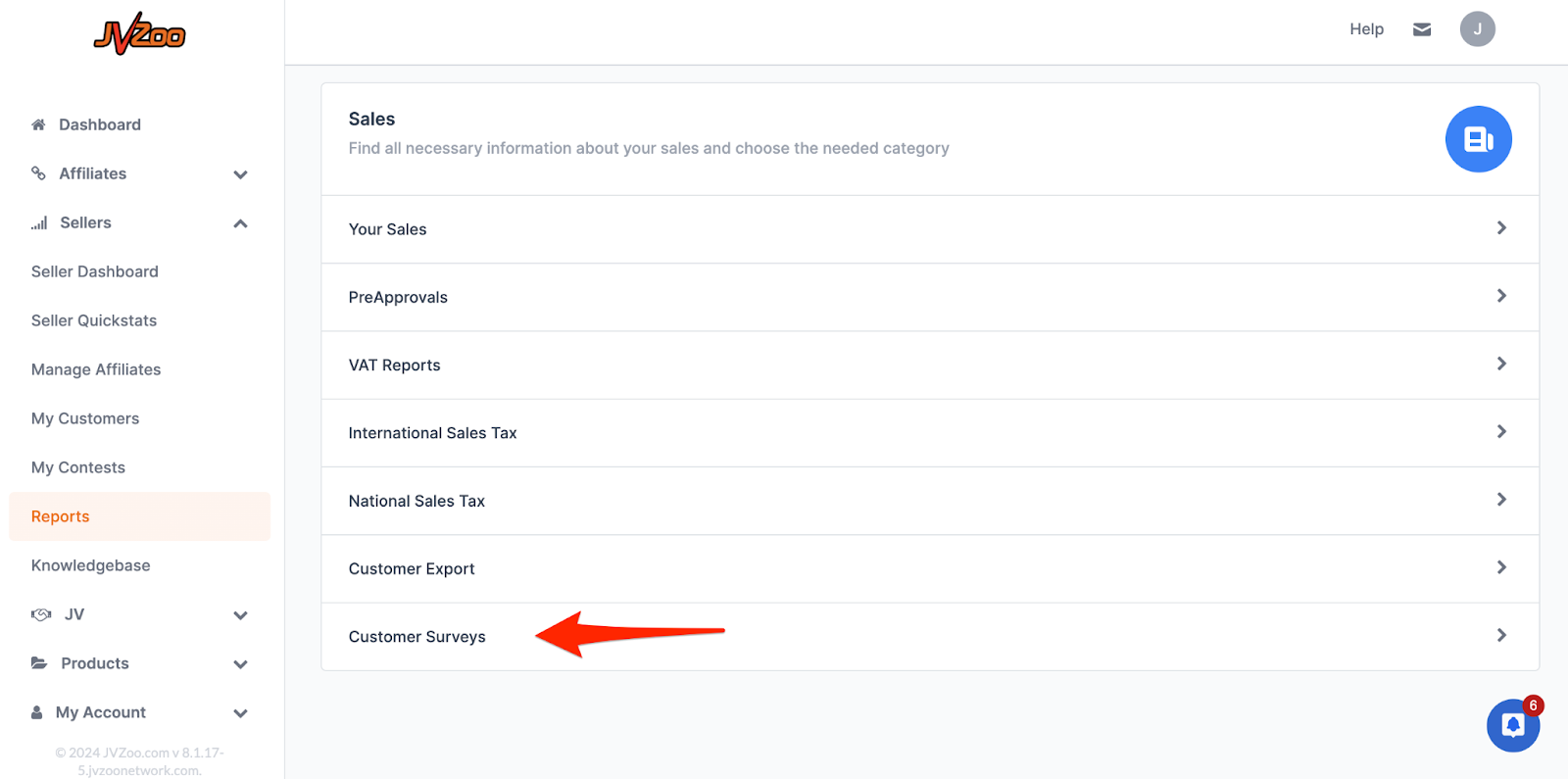 JVZoo now allows customers to rate and review products that they have purchased through customer surveys. As the seller of the product, you can review these surveys and the feedback provided. To see any reviews of your products go to Sellers > Reports > Customer Surveys as shown here